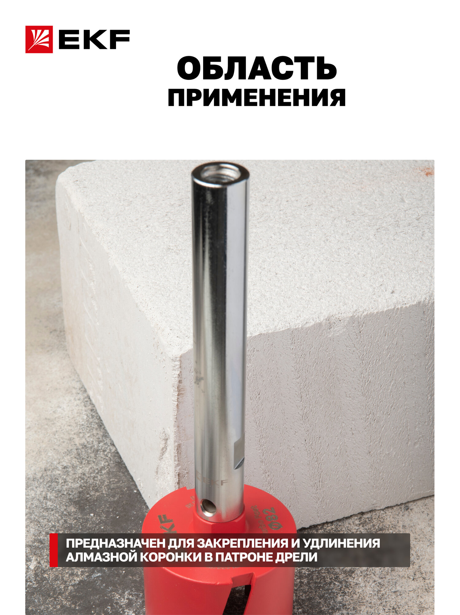 Характиристики этого товара не найдены!Отзывы на Удлинитель алмазных коронок Expert EKF, М16-М16, для глубокого бурения