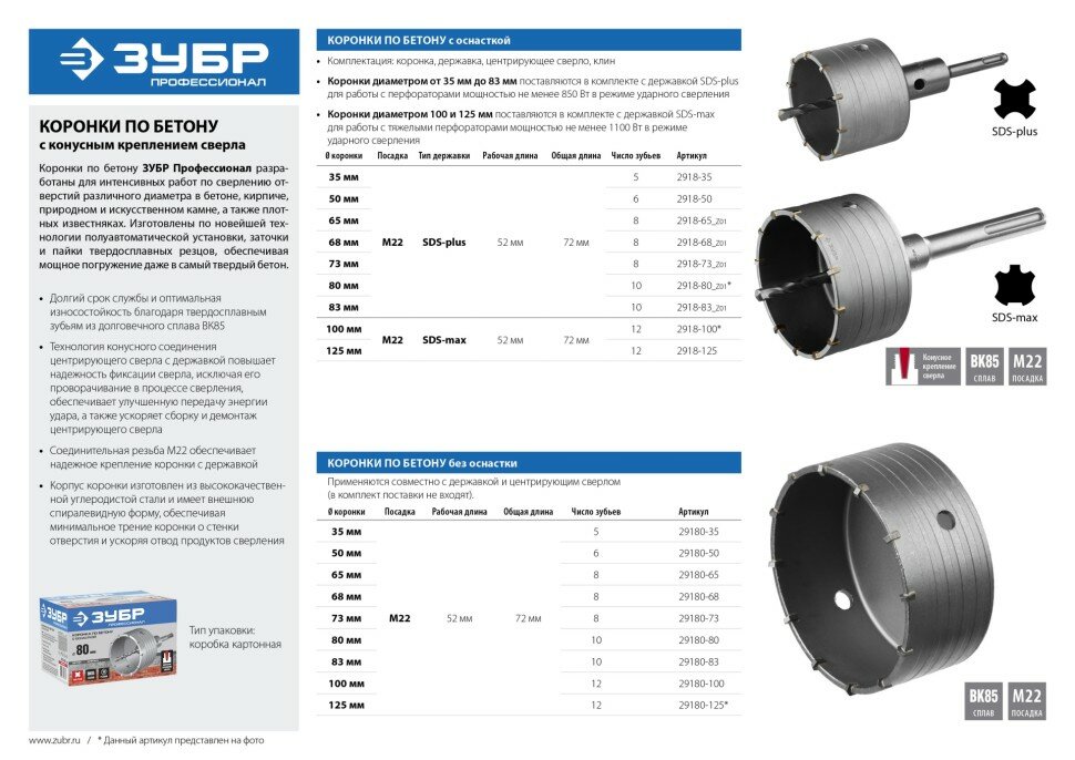 10 цен на ЗУБР Коронка ЗУБР буровая кольцевая, по бетону, без державки, 68мм, ( 29180-68 )