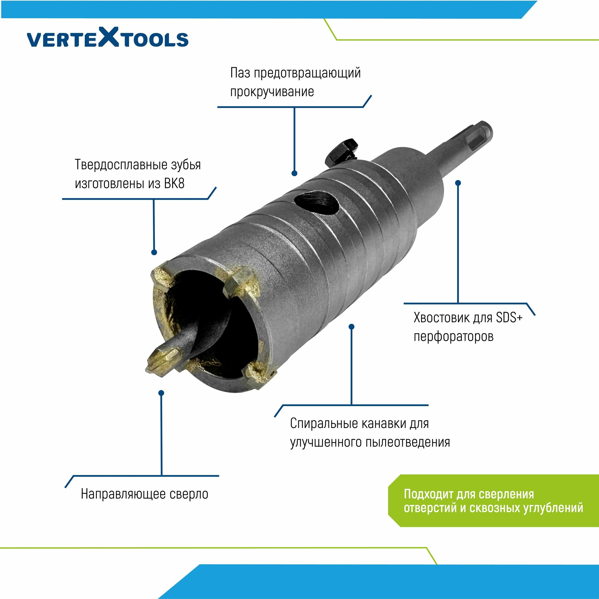10 цен на Коронка по бетону VertexTools в сборе 40мм с хвостовиком SDS-PLUS