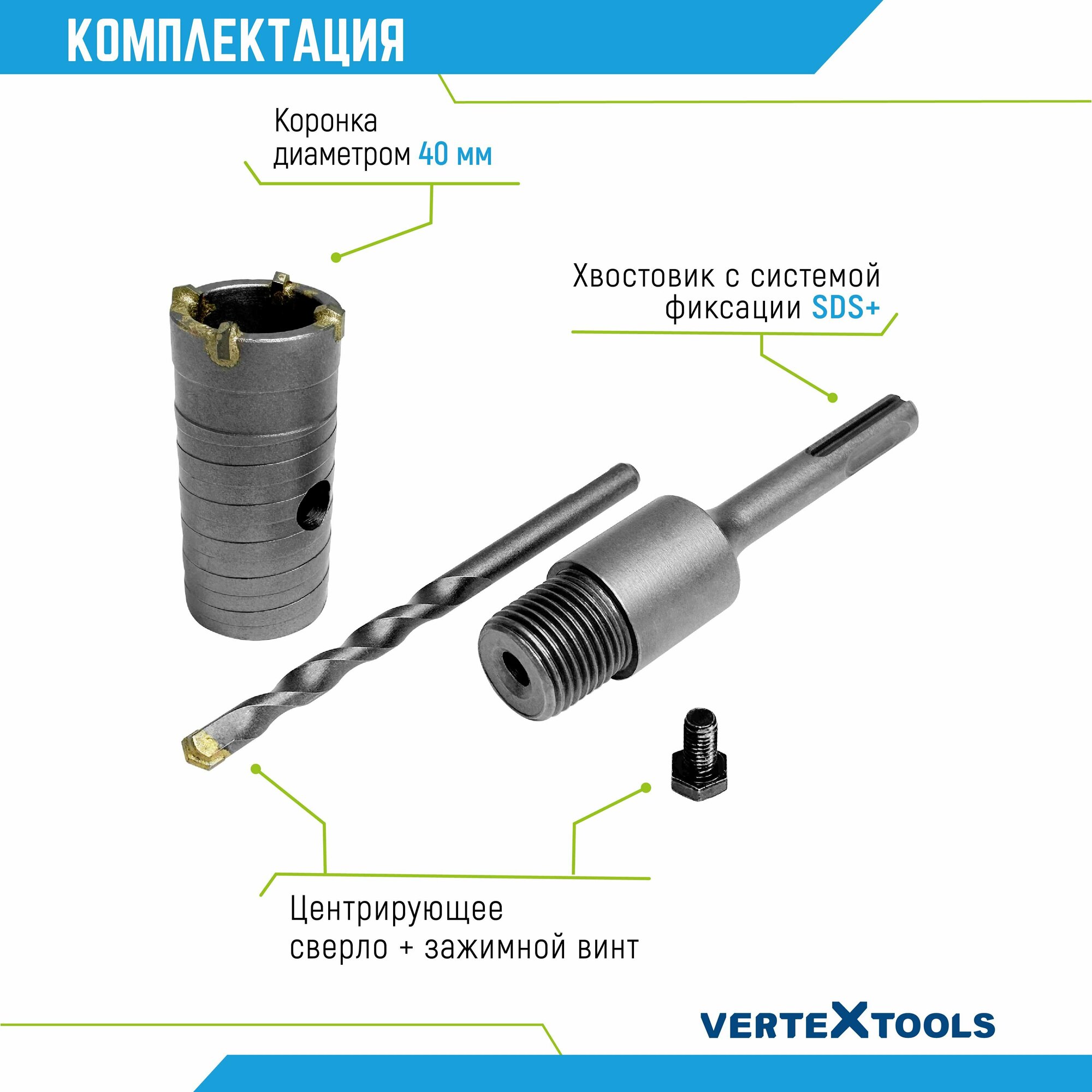 Коронка по бетону VertexTools в сборе 40мм с хвостовиком SDS-PLUS информация: