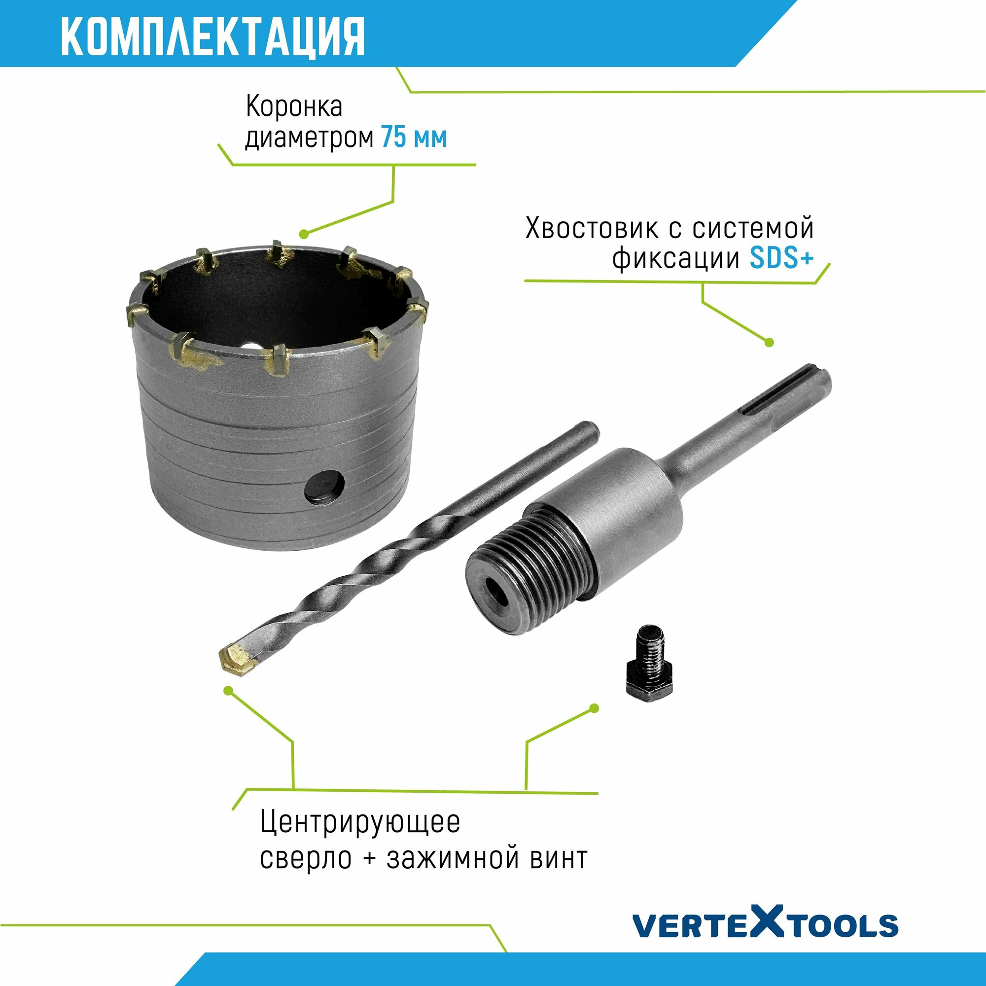 10 цен на Коронка по бетону VertexTools в сборе 75мм с хвостовиком SDS-PLUS