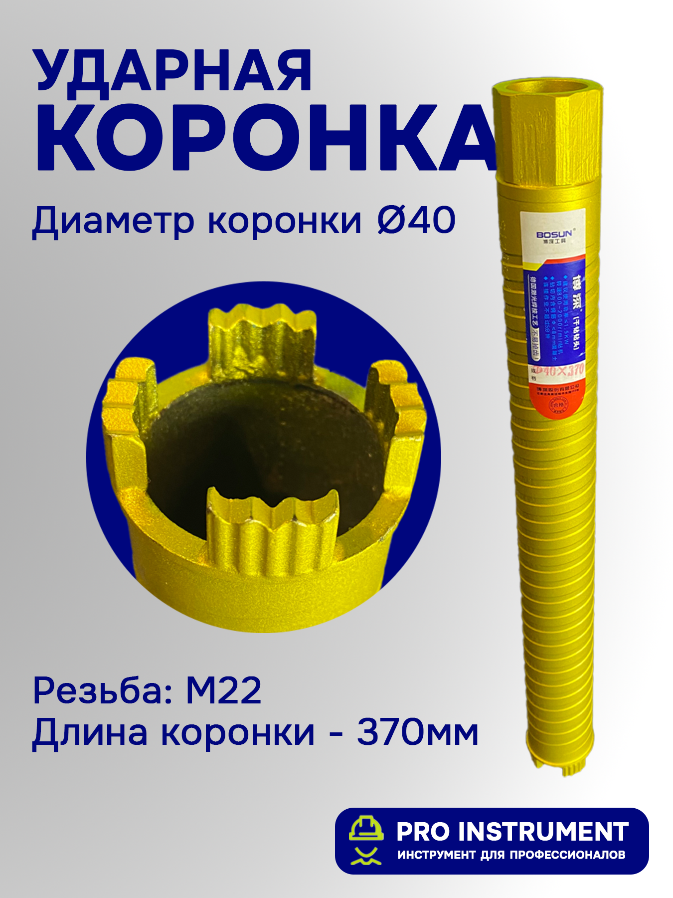 10 цен на Коронка алмазная ударная, по бетону, диаметр 40мм, длина 370мм