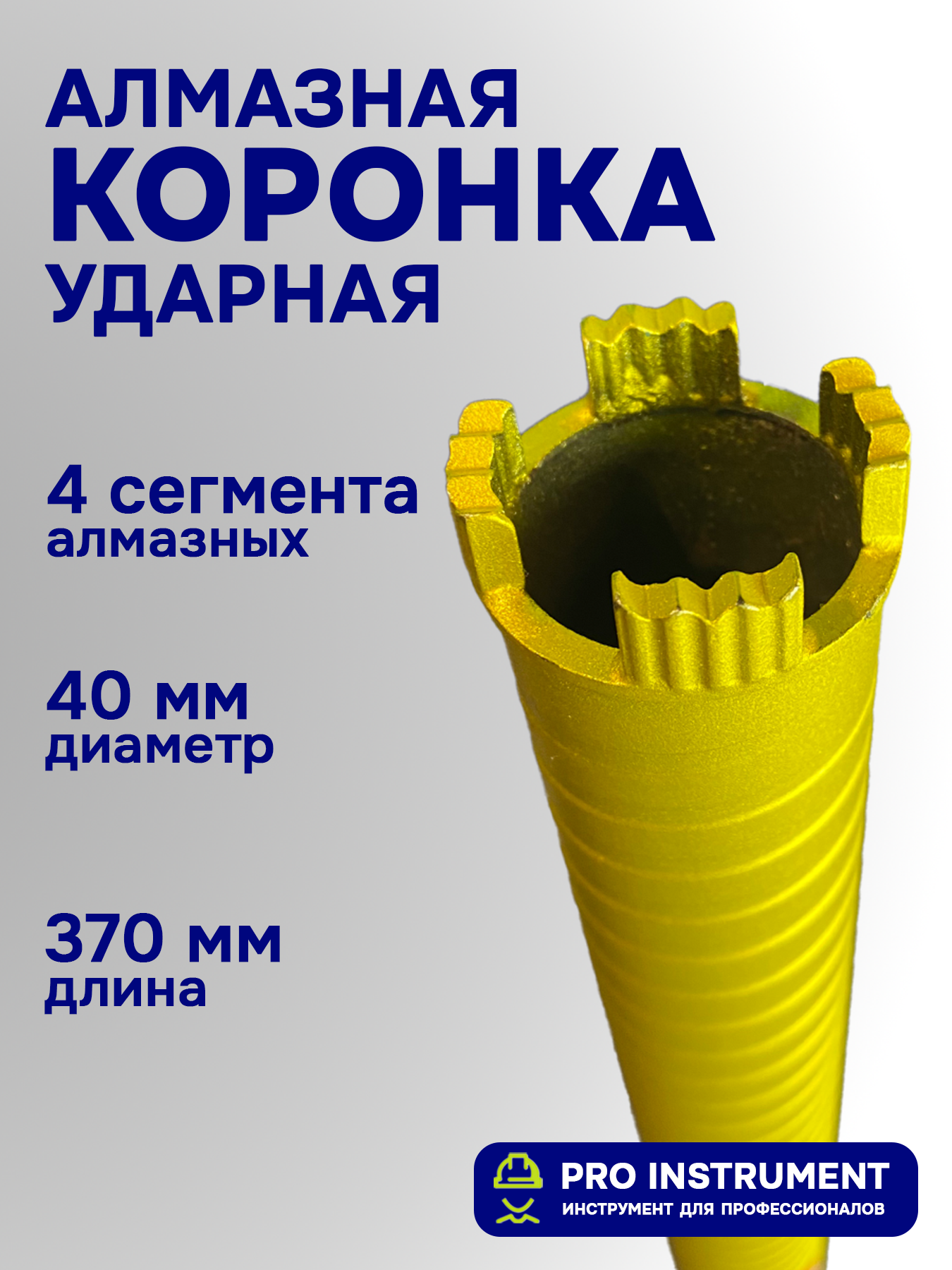 Коронка алмазная ударная, по бетону, диаметр 40мм, длина 370мм информация:
