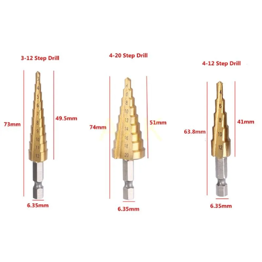 10 цен на Ступенчатые сверла, по металлу, с титановым покрытие, HSS, 3 шт