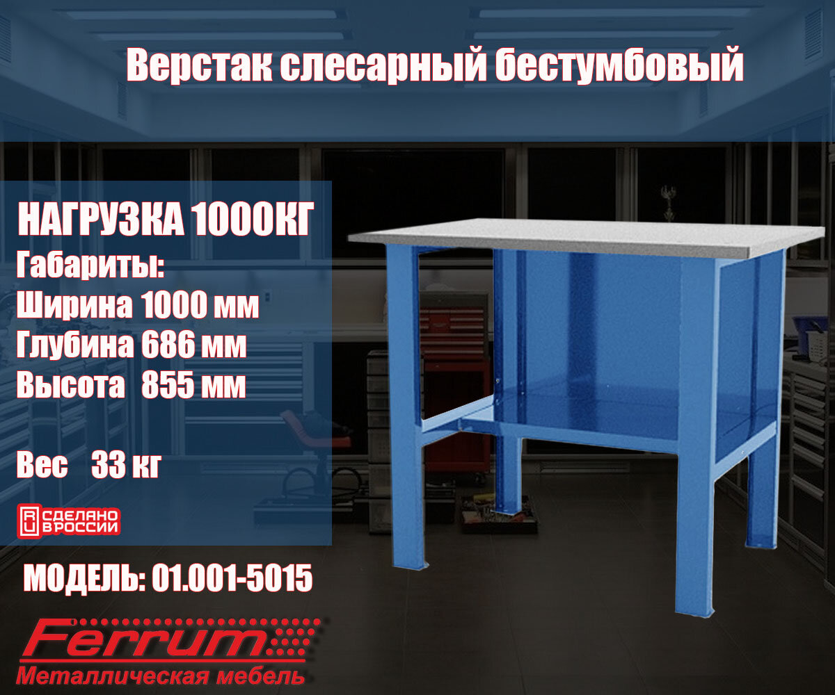 Верстак слесарный Ferrum MP01.001-5015, 1000x686x700 мм, синий информация: