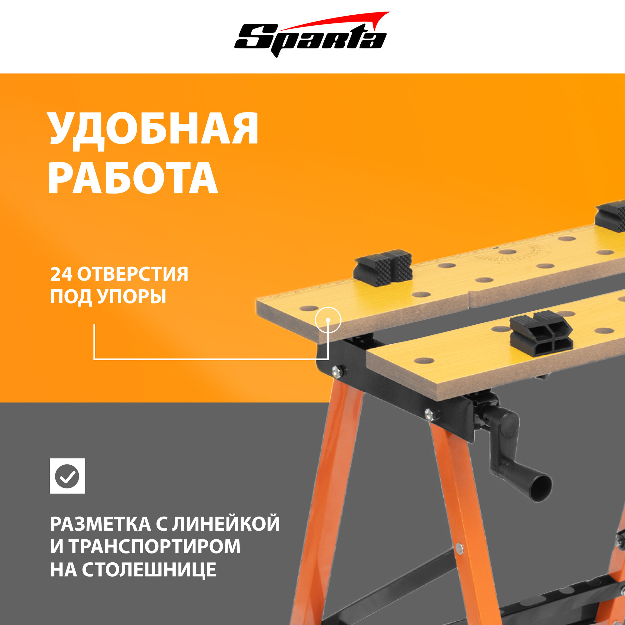 10 цен на Верстак-тиски Sparta 605 х 635 х 750 мм, портативный, нагрузка до 100 кг, 4 съемных упора 257065