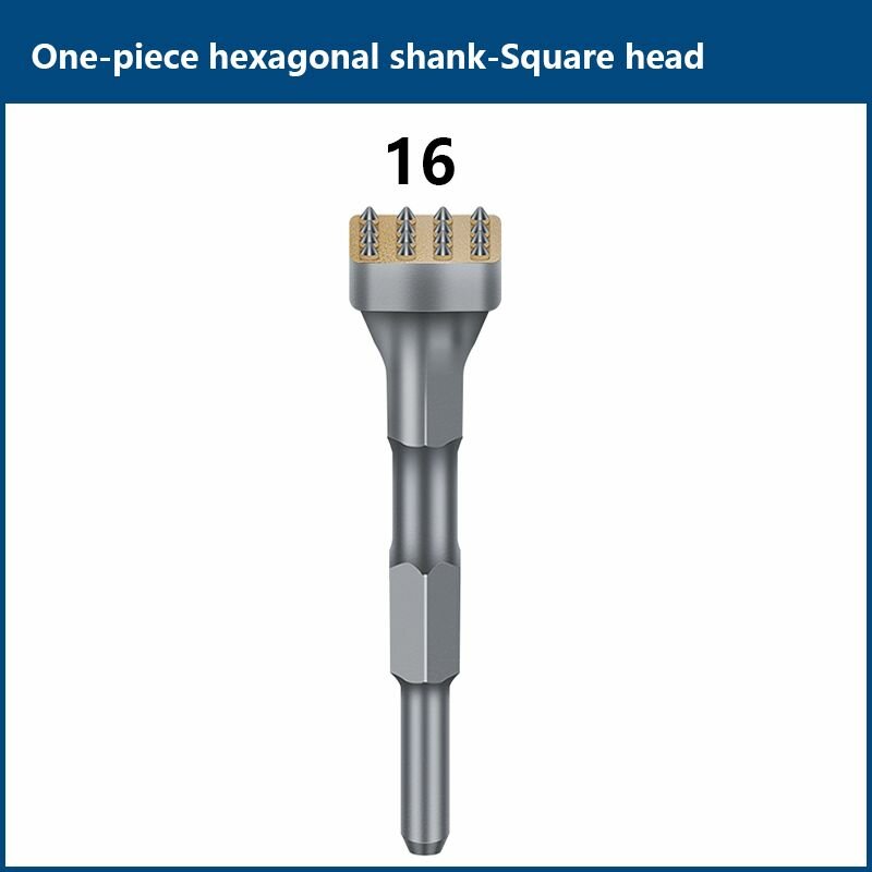 Зубило с шестигранным хвостовиком с квадратной головкой и 16 зубьями для бетона, кирпича и камня