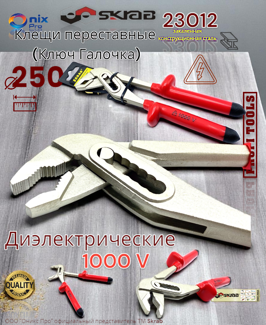 Ключ галочка ( Клещи переставные )250/mm10" с диэлектрической 1000V ручкой SKRAB 23012 информация: