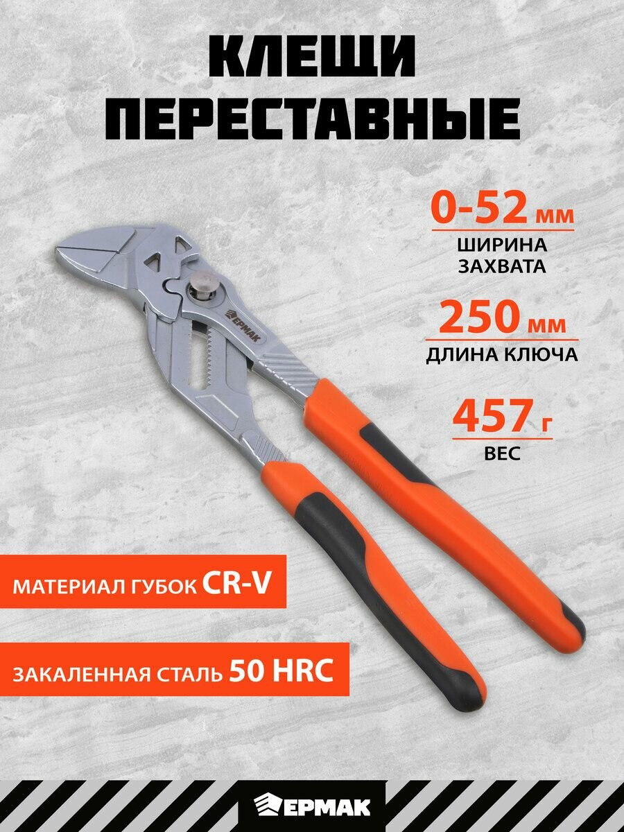Клещи переставные-гаечный ключ ермак, 250 мм информация: