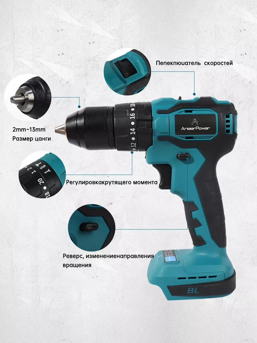 10 цен на Шуруповёрт ANEERPOWER, ударный, бесщёточный, 13мм, синий(Только машины)