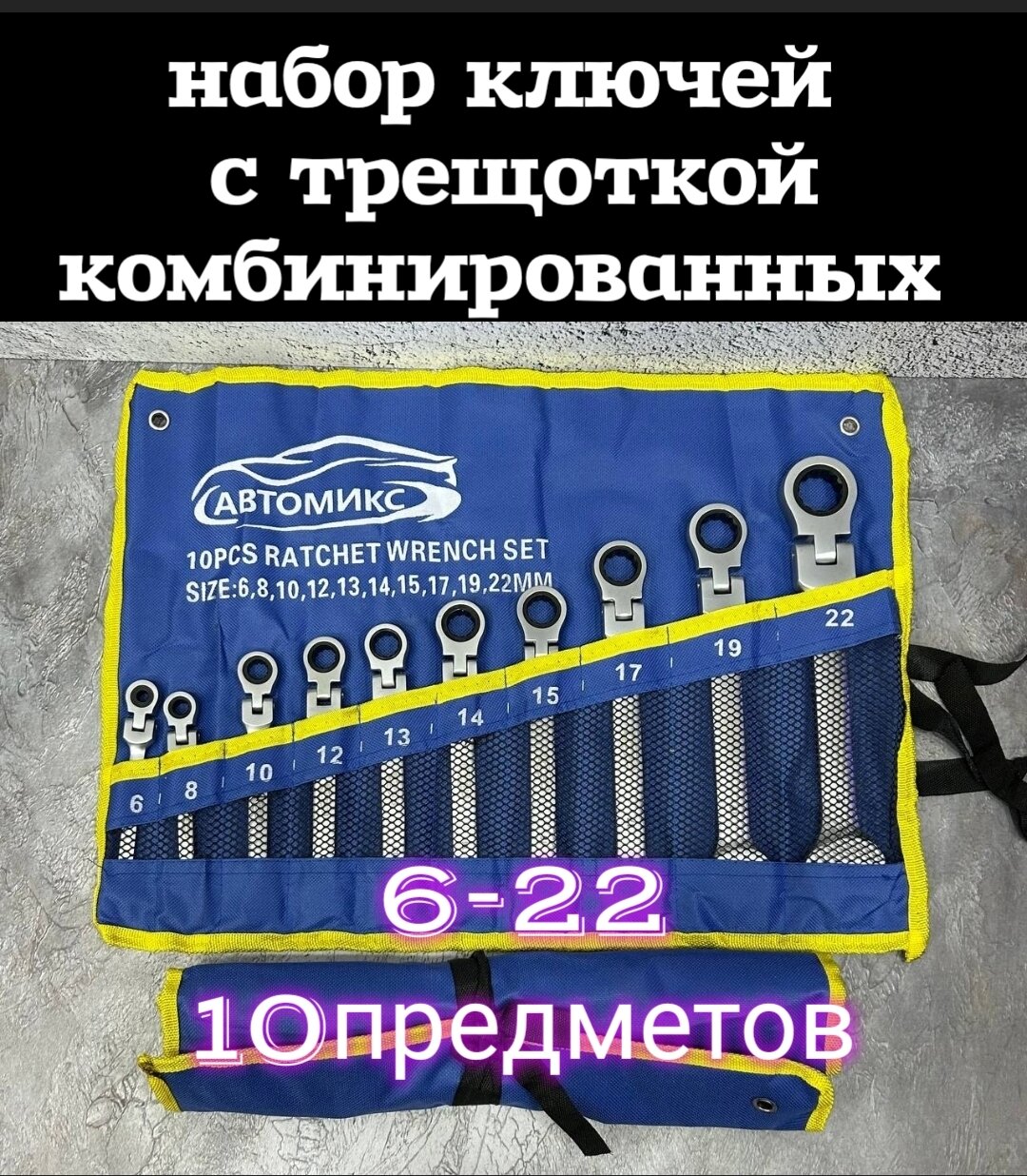 Набор ключей рожковых с трещоткой 6-22, 10 предметов, в сумке информация: