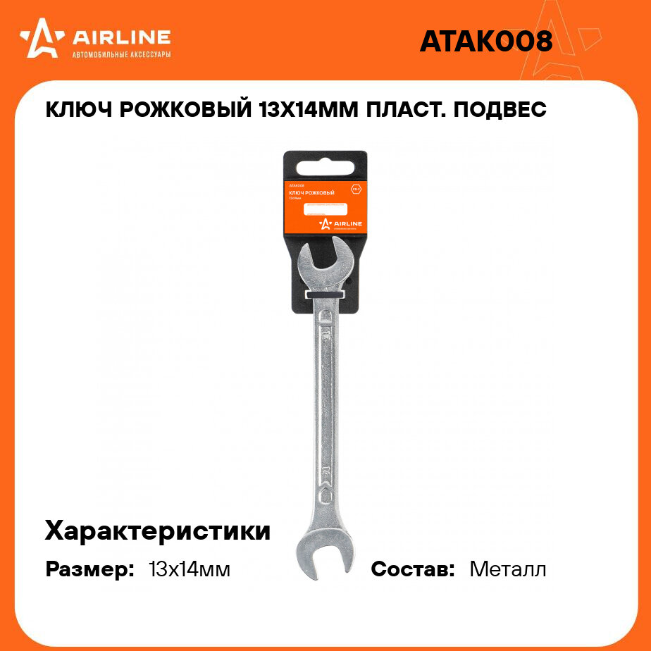 Ключ рожковый 13х14мм пласт. подвес ATAK008 AIRLINE информация: