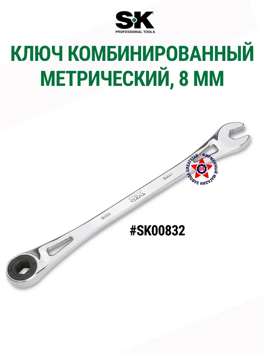 Комбинированный метрический ключ 8 мм SK00832, SK TOOLS #SK00832 информация: