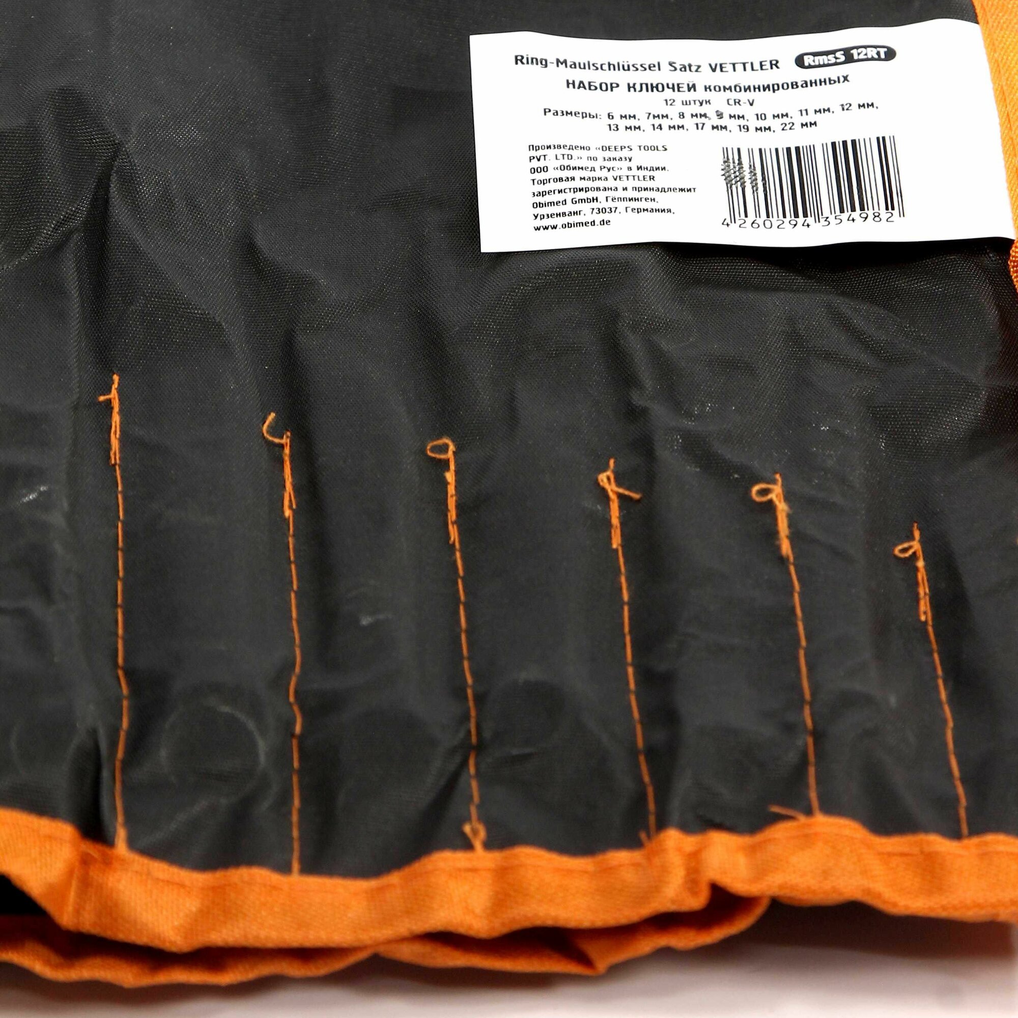 Набор ключей для автомобиля, 12 комбинированных ключей 6-22 мм + сумка, VETTLER RmsS 12RT информация: