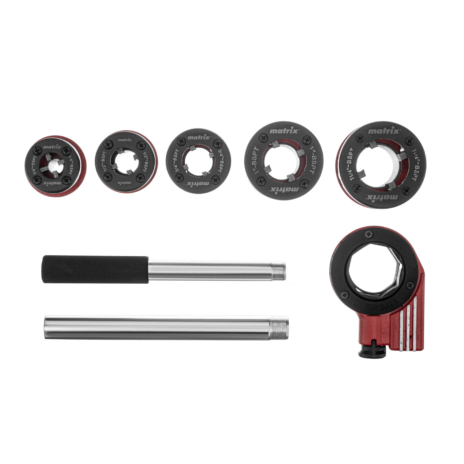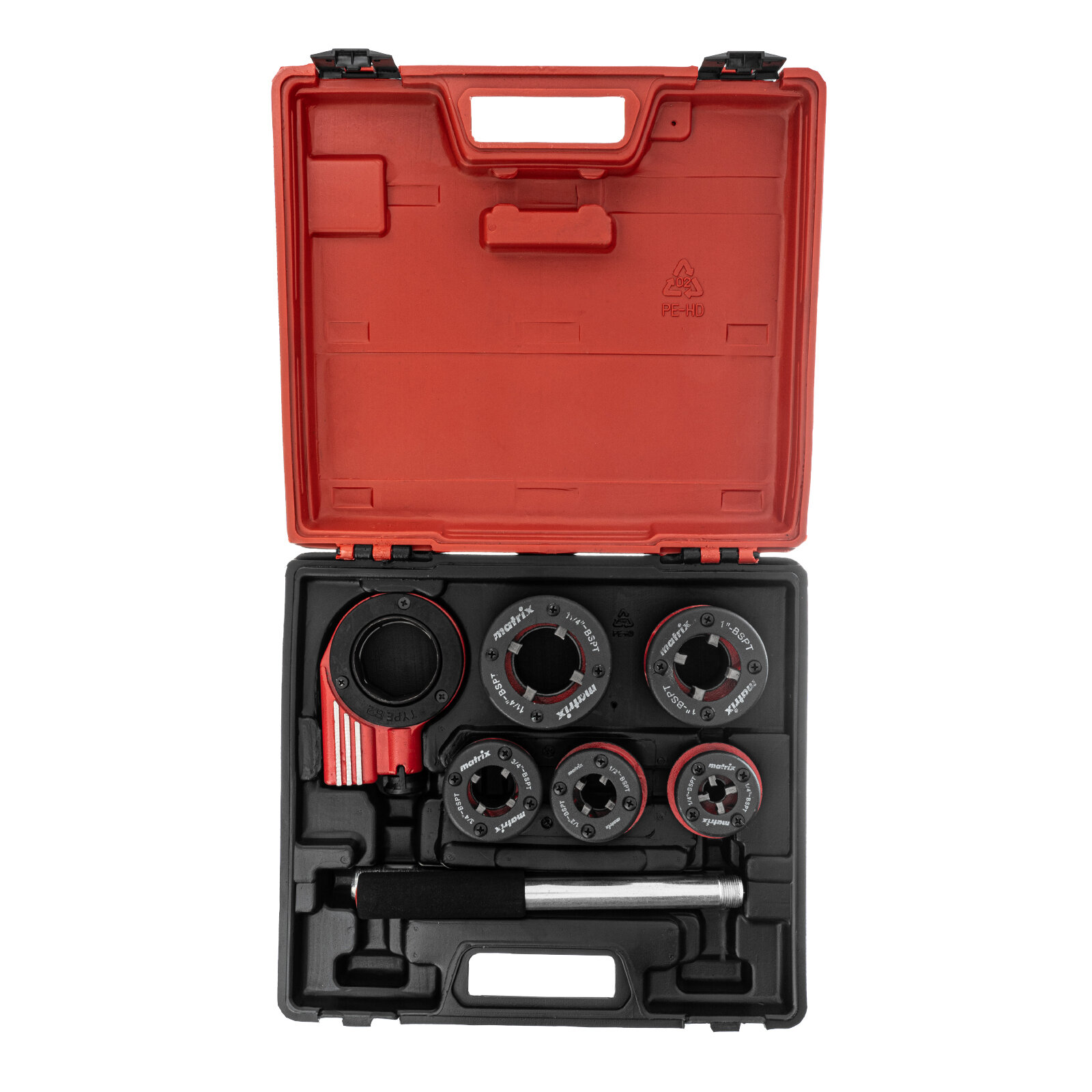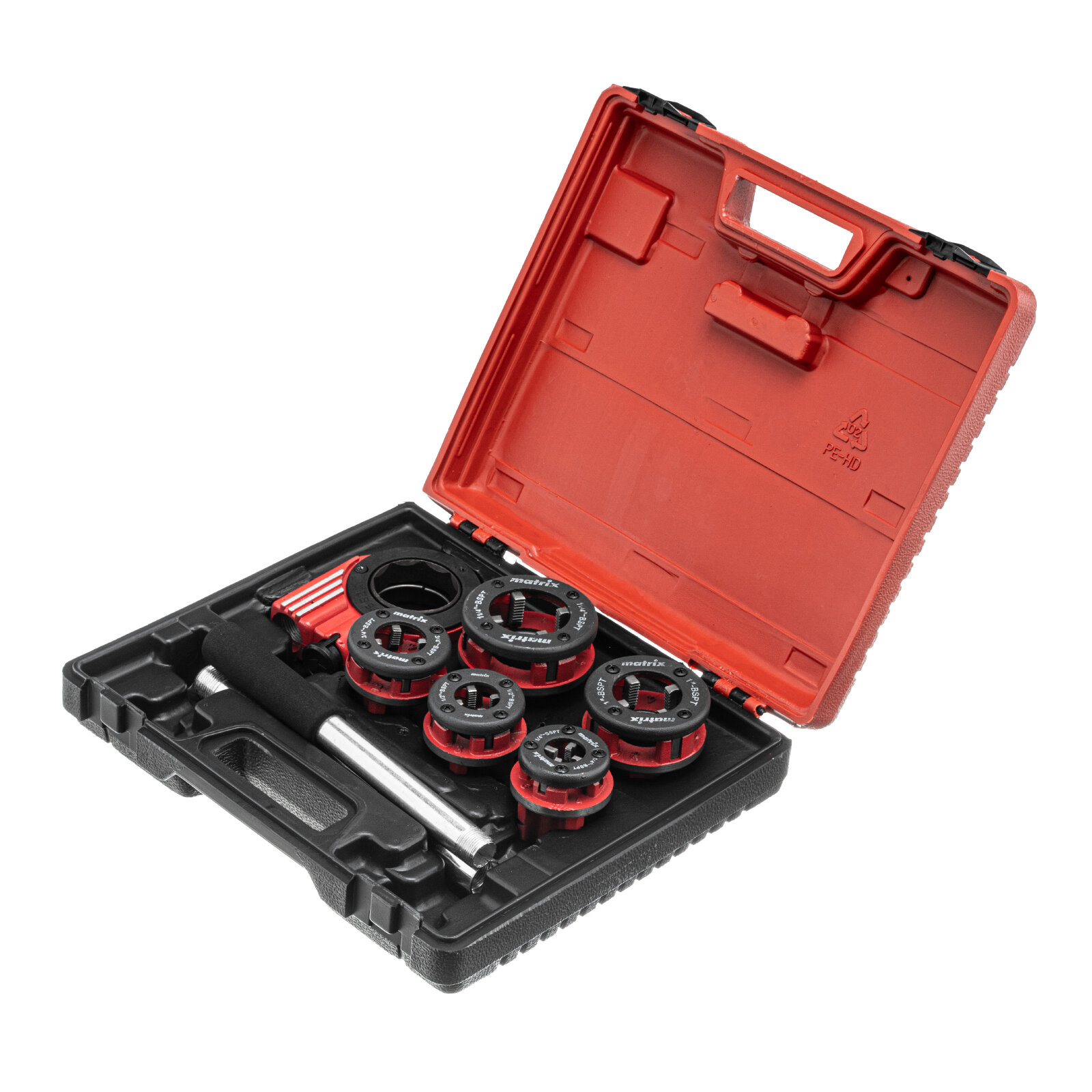 Отзывы на Набор клуппов Matrix 1/4"-1/2"-3/4"-1"-1,25", плашкодержатель с трещоткой, 8 предметов 77332