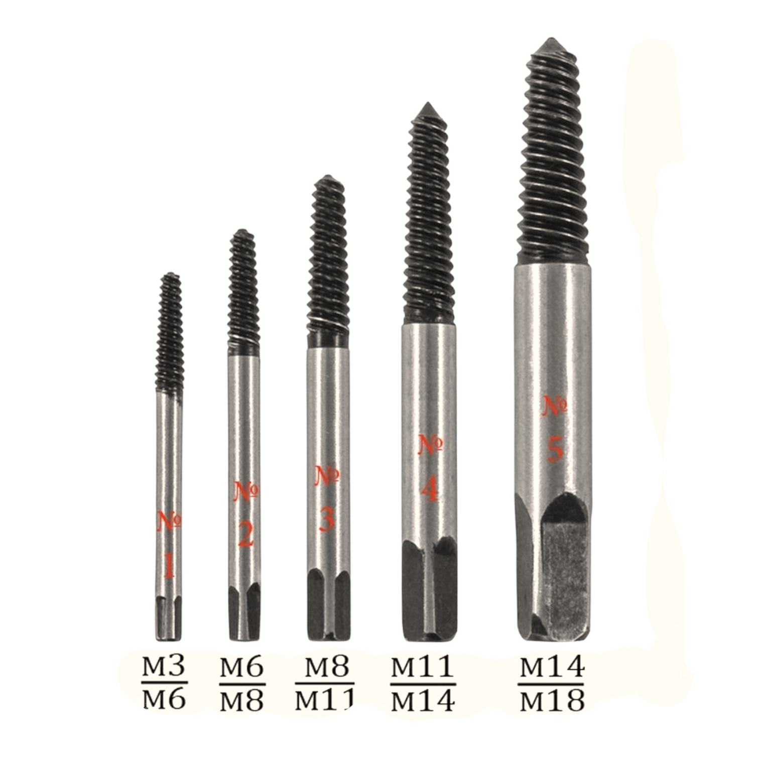 Набор экстракторов резьбы HSS,5 предметов, М3-М19, в пластиковом футляре информация: