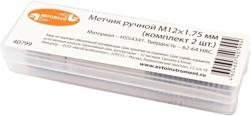Метчик ручной М16х1,50мм АвтоDело набор 2шт. пластм/ф 40804 информация:
