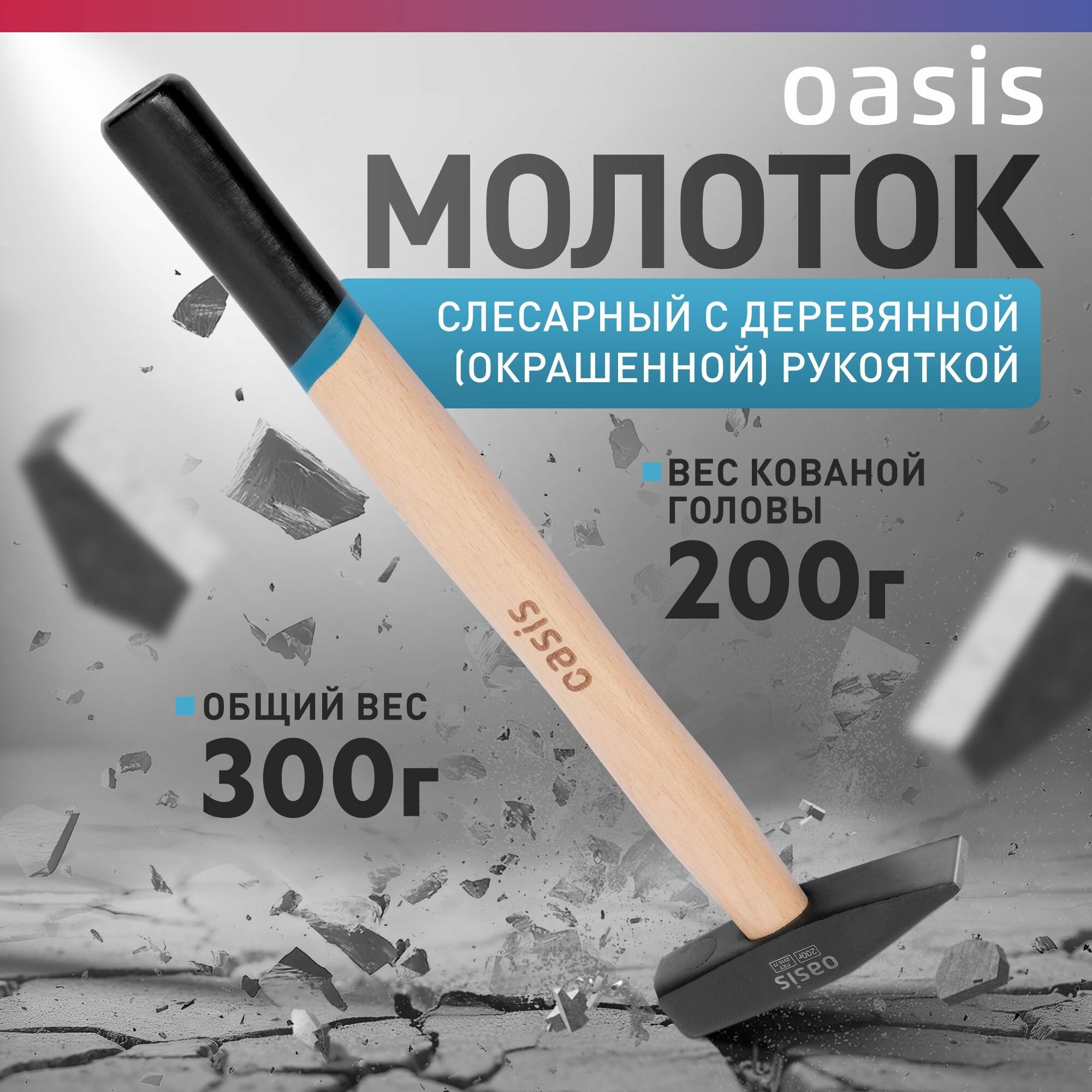 Молоток слесарный с деревянной (окрашенной) рукояткой Oasis 200 г 103010603011 информация: