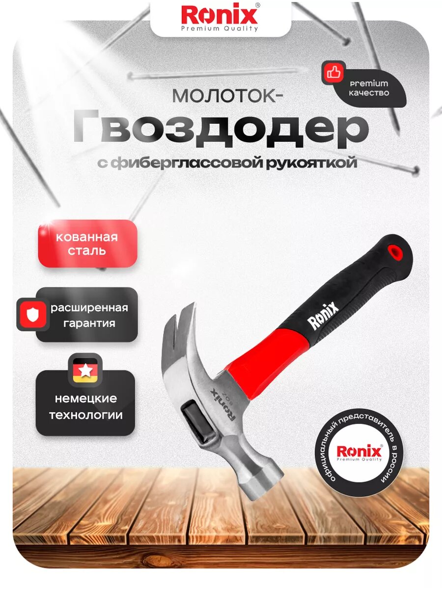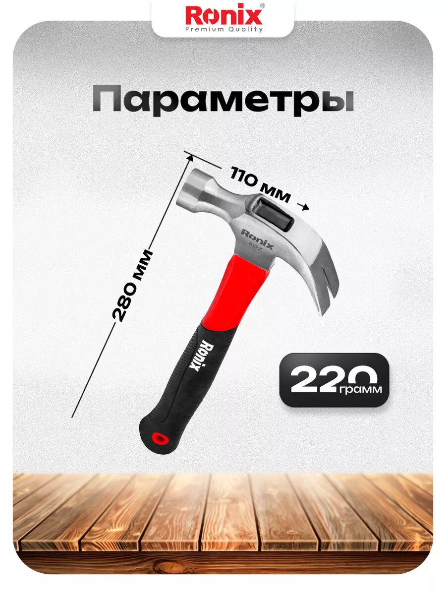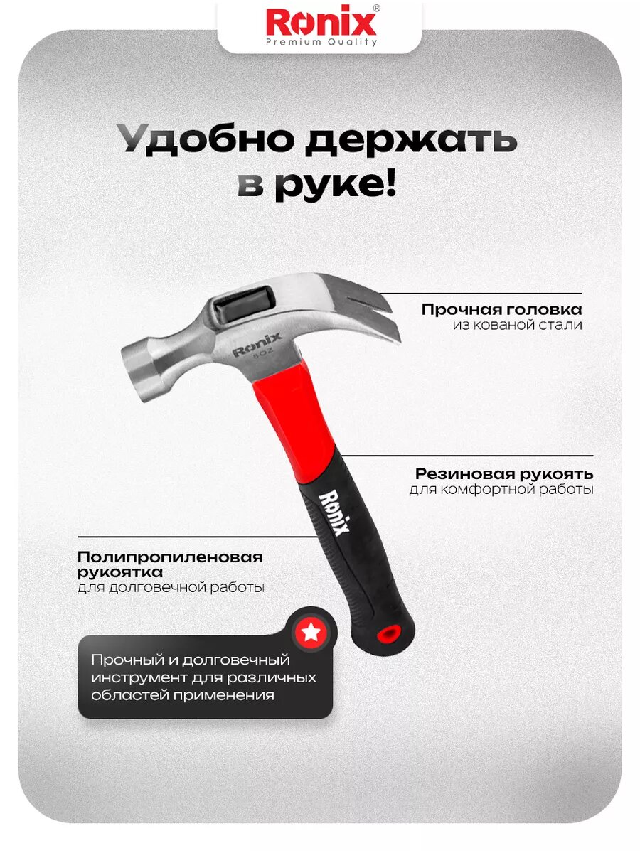 Молоток строительный с гвоздодером Ronix маленький 220 гр стальной информация: