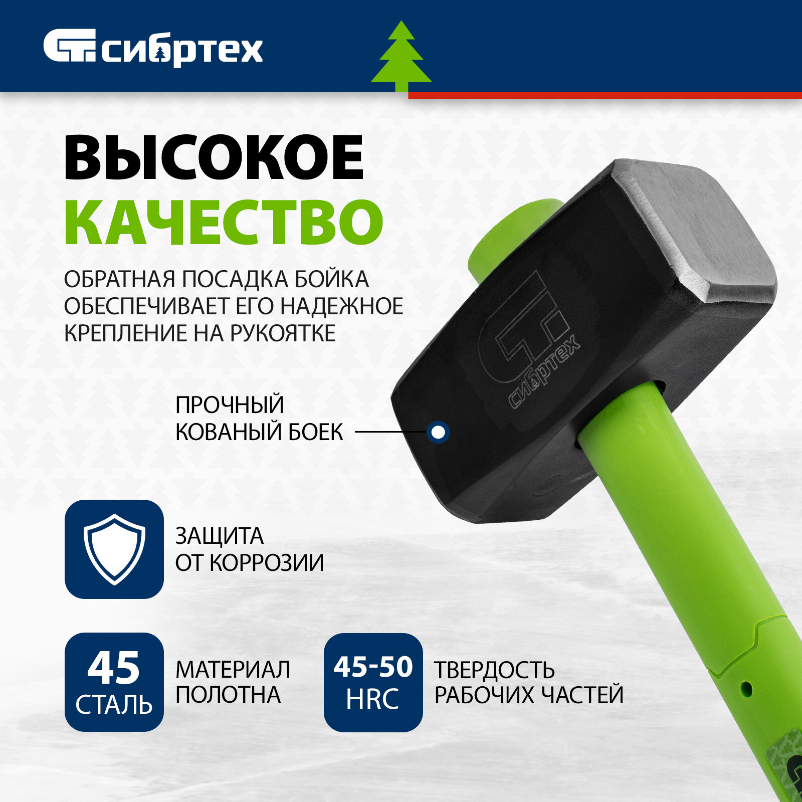 Кувалда Сибртех, 6000 г, фибергласовая обрезиненная рукоятка, 10897 информация: