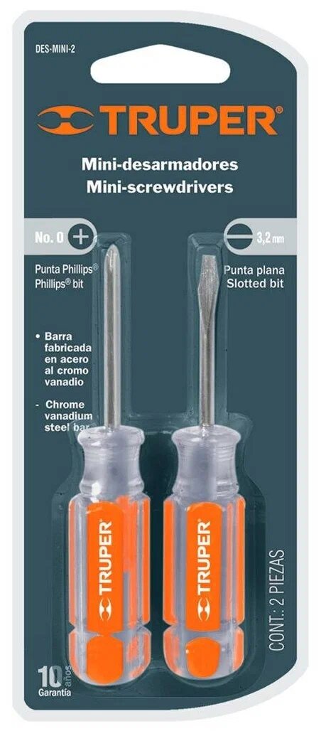 Набор мини отверток Truper Des-mini-2, Cr-V, 9 см, 2 шт. Truper 3243270 информация: