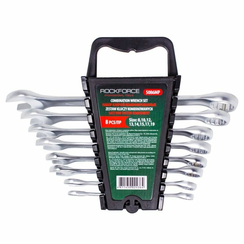 Ключи комбинированные, набор 8 предметов (8, 10, 12-15, 17, 19 мм) ROCKFORCE информация: