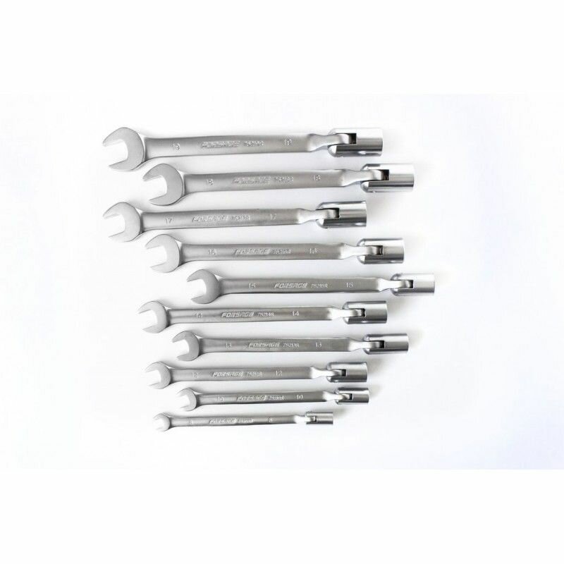 Набор ключей рожково-торцевых шарнирных 10 предметов (8, 10, 12-19 мм), на полотне Forsage информация: