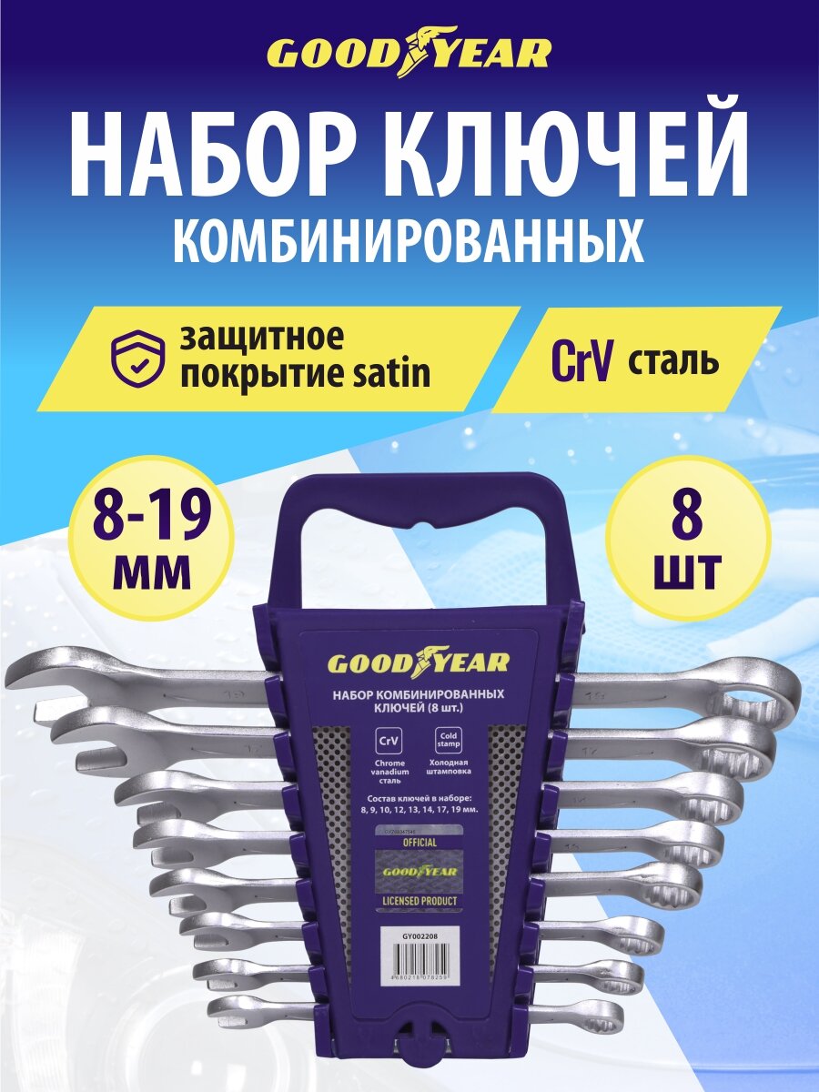 10 цен на Набор ключей комбинированных Goodyear 8 шт: 8, 9, 10, 12, 13, 14, 17, 19 мм, в пластиковом холдере
