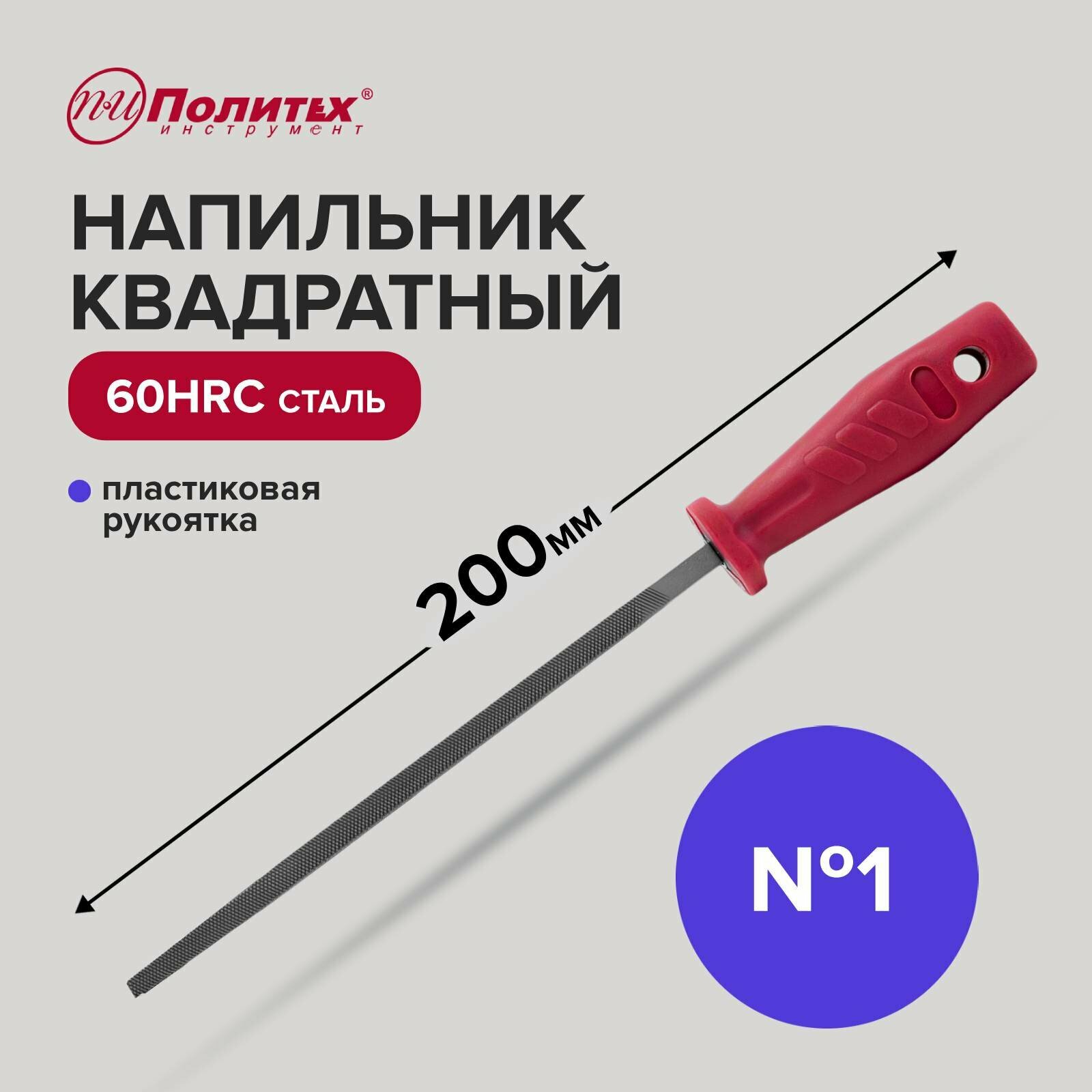 Напильник по металлу 200 мм квадратный № 1, пластиковая рукоять, Политех Инструмент информация: