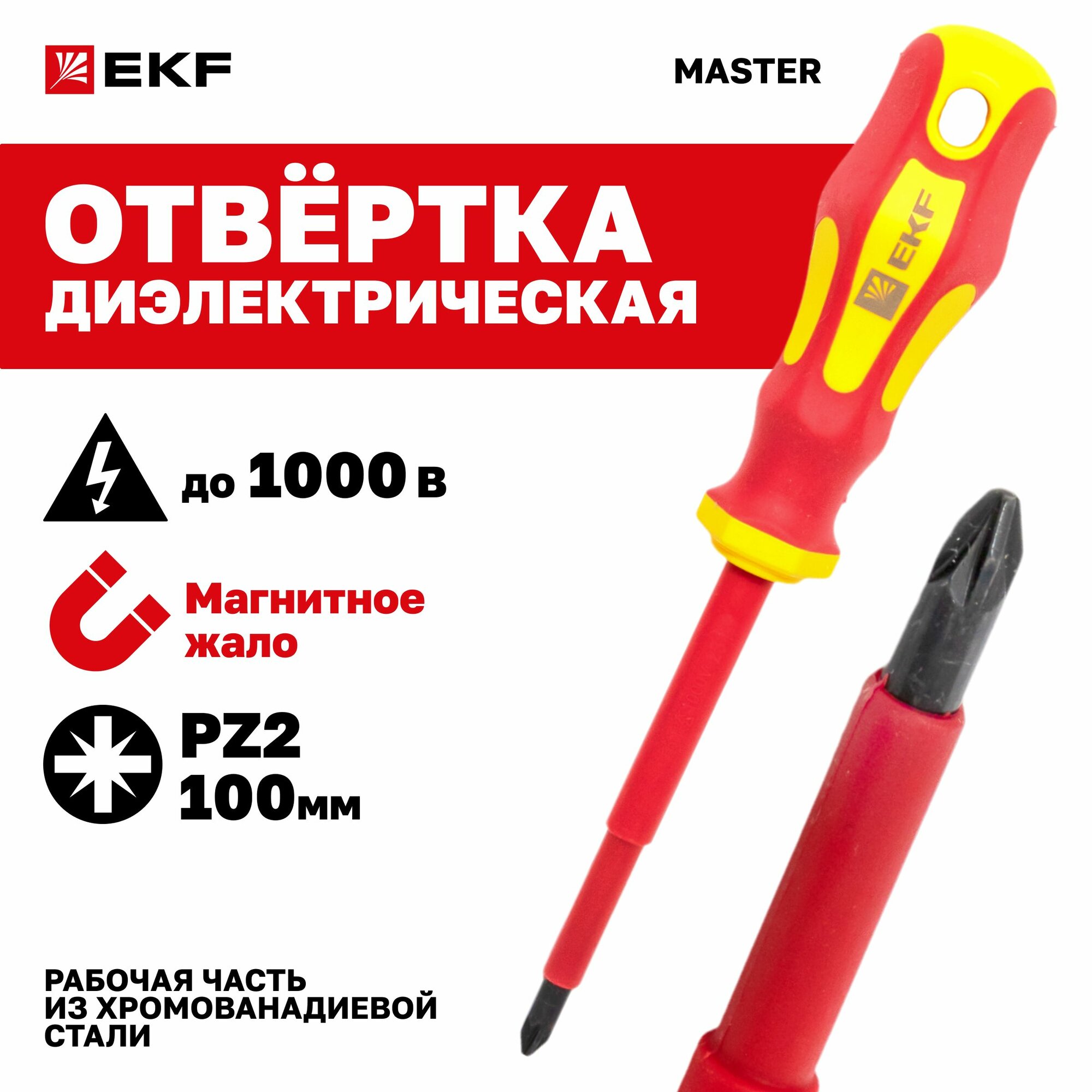 Отвертка диэлектрическая Master PZ2x100 мм 1000В EKF, двухкомпонентная рукоятка информация: