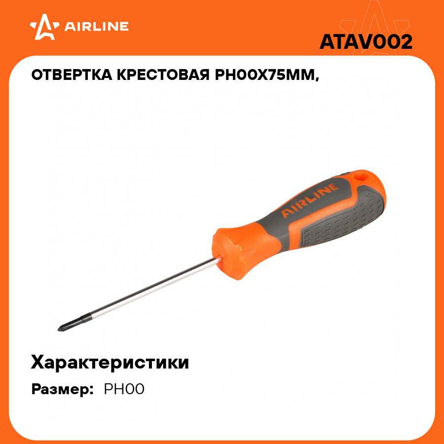 Отвертка крестовая PH00x75мм, магнитный наконечник, пласт. подвес ATAV002 AIRLINE информация: