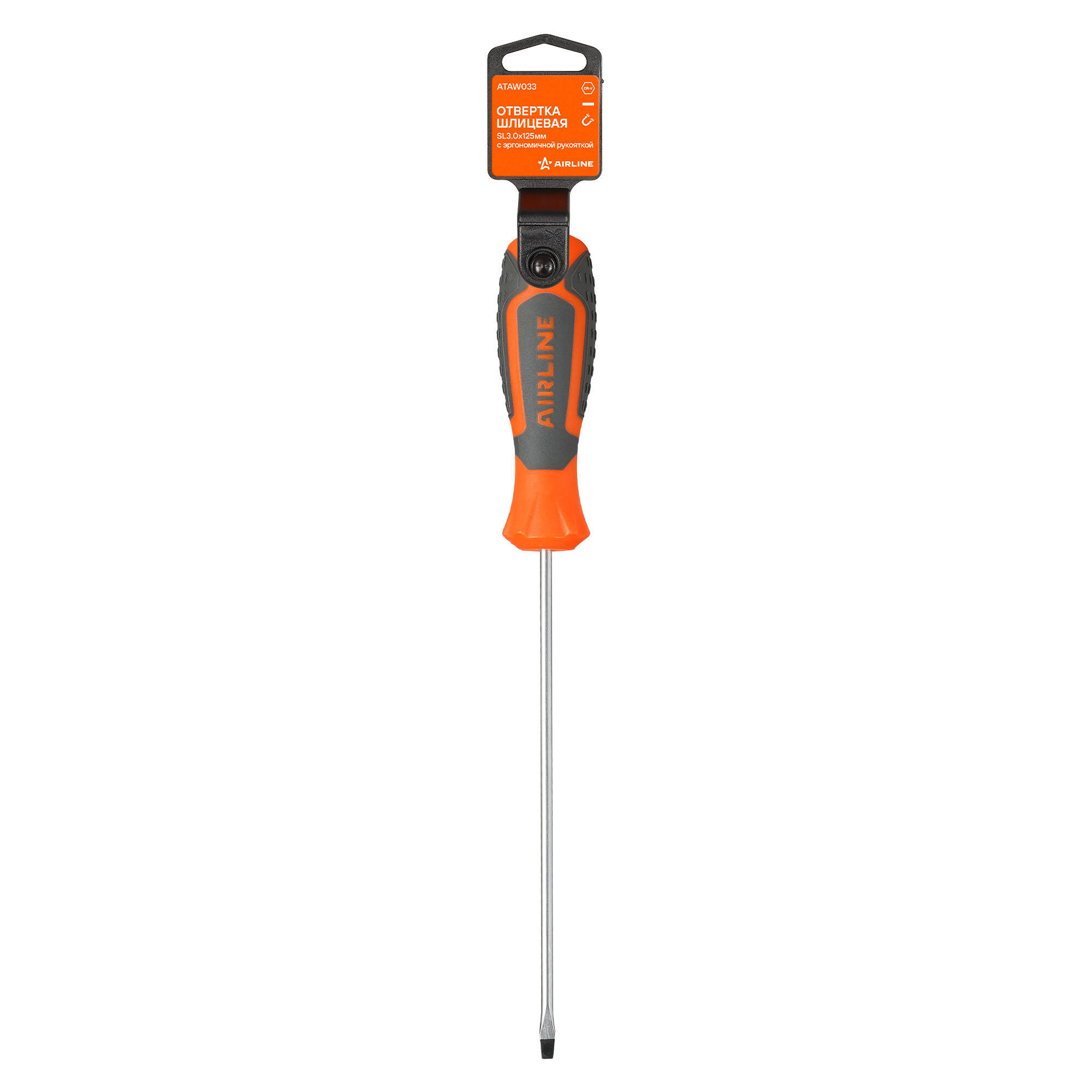 Отвертка шлицевая SL3.0x125мм, магнитный наконечник, пласт. подвес ATAW033 AIRLINE информация:
