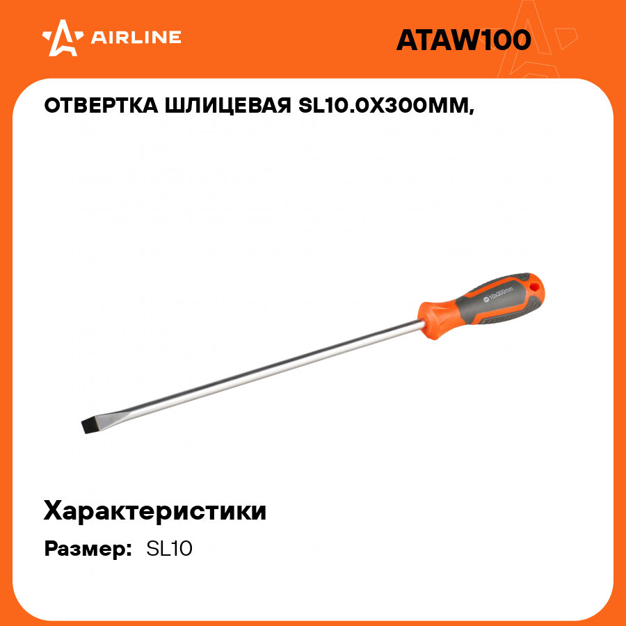 Отвертка шлицевая SL10.0x300мм, магнитный наконечник, пласт. подвес ATAW100 AIRLINE информация: