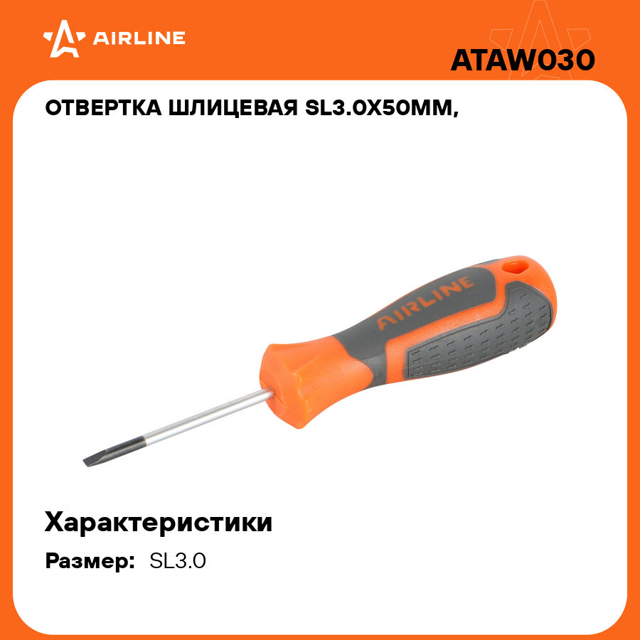 10 цен на Отвертка шлицевая SL3.0x50мм, магнитный наконечник, пласт. подвес ATAW030 AIRLINE