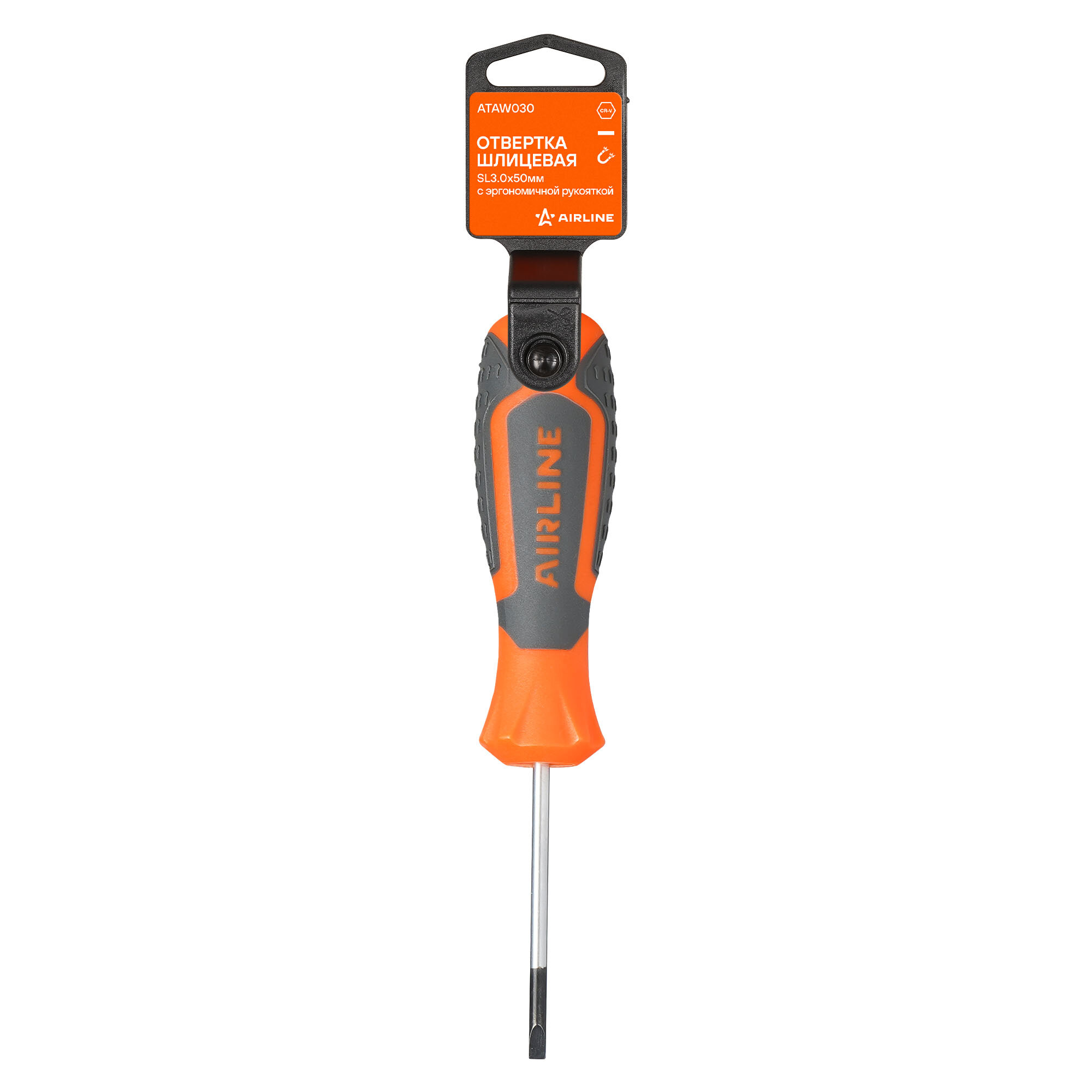 Отвертка шлицевая SL3.0x50мм, магнитный наконечник, пласт. подвес ATAW030 AIRLINE информация: