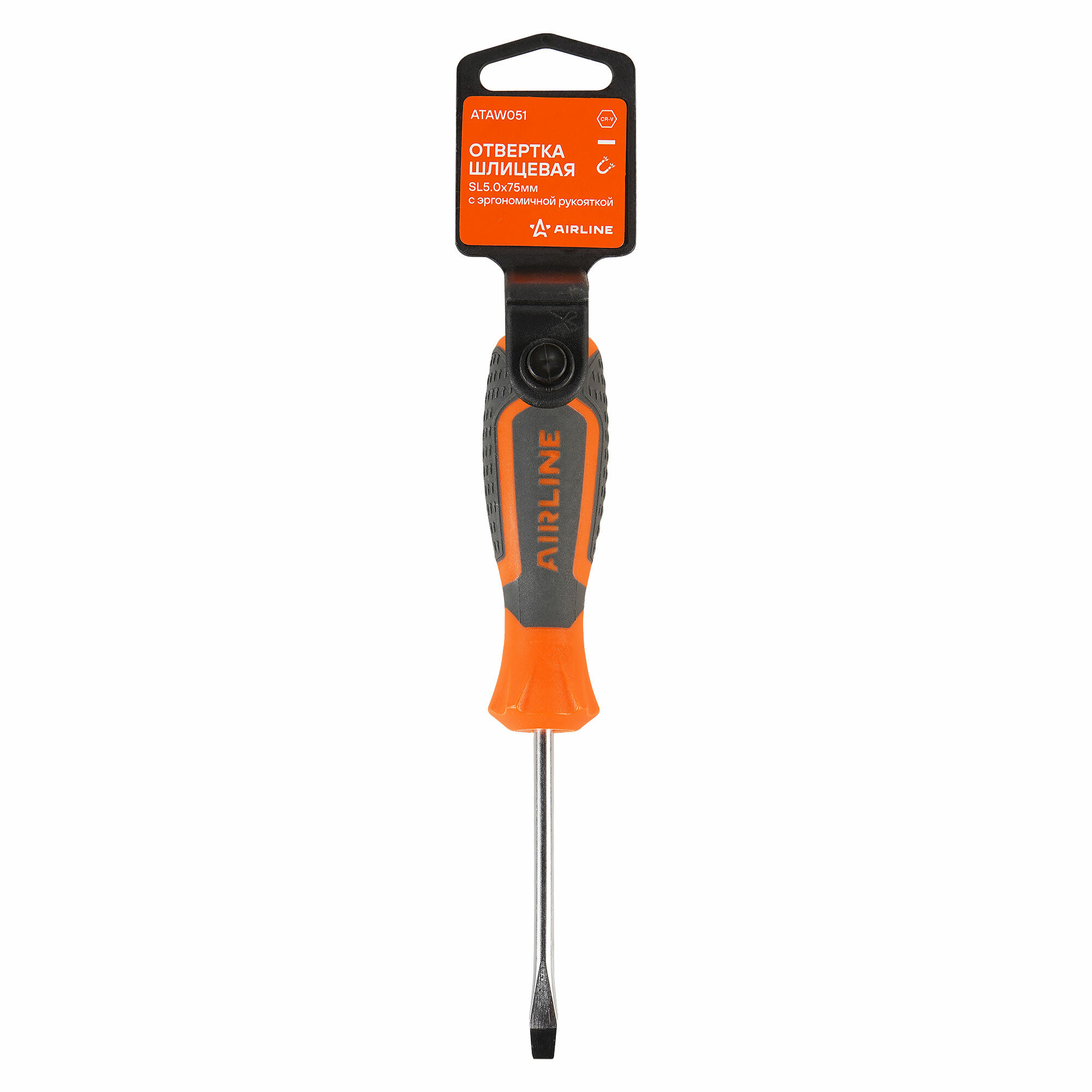 Отвертка шлицевая SL5.0x75мм, магнитный наконечник, пласт. подвес ATAW051 AIRLINE информация: