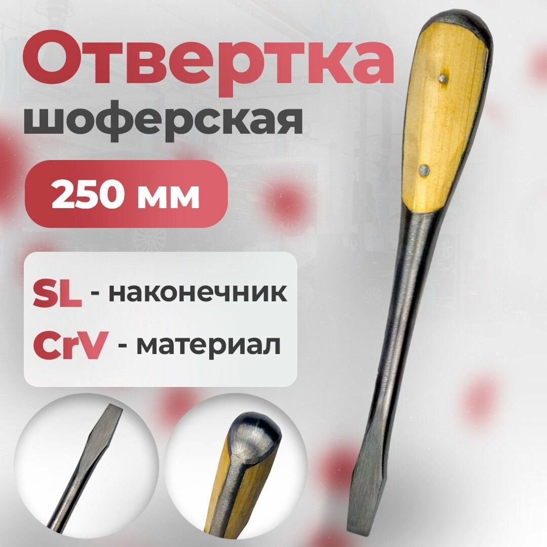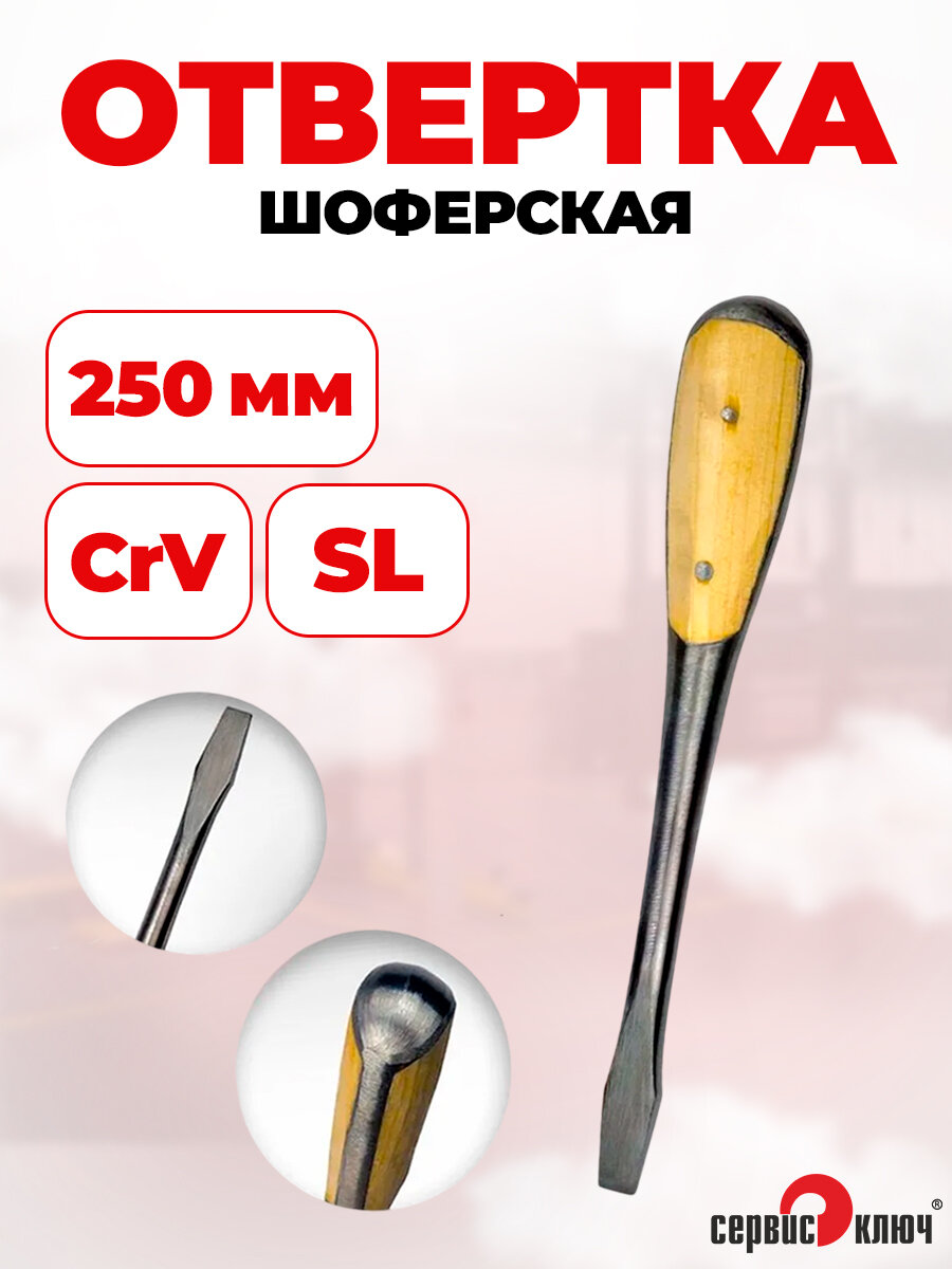 Отвертка шоферская 250 мм под молоток с дер. щечками, сервис Ключ информация: