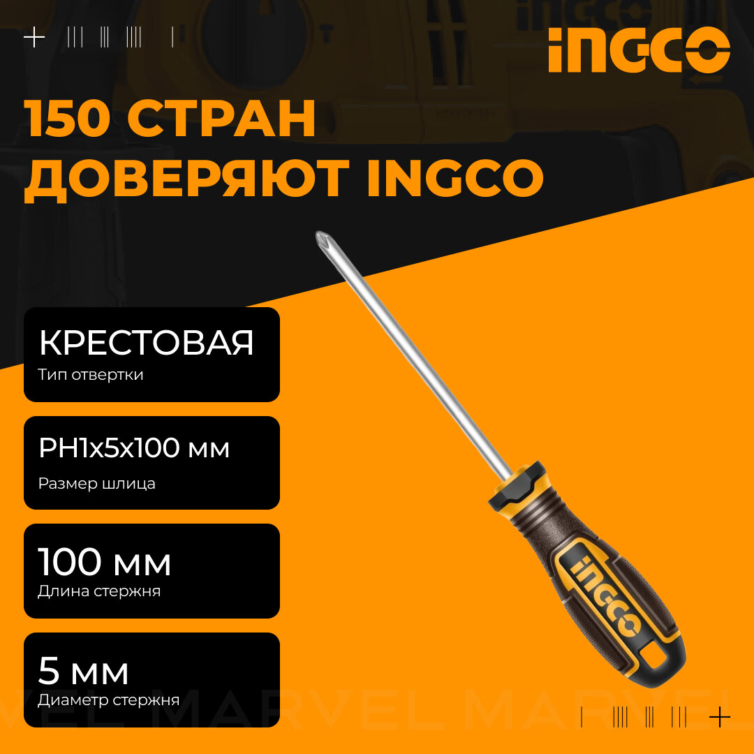 Отзывы на Отвертка крестовая INGCO INDUSTRIAL HSDPH1100, сталь, PH1x100 мм