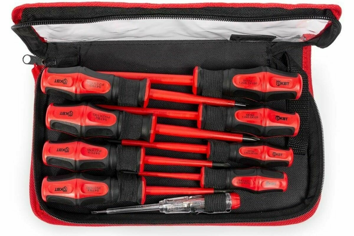 Отзывы на Набор диэлектрических отверток НИО-09 серия профи ( 9 предметов + кофр) для работ под напряжением до 1000 В КВТ 78620