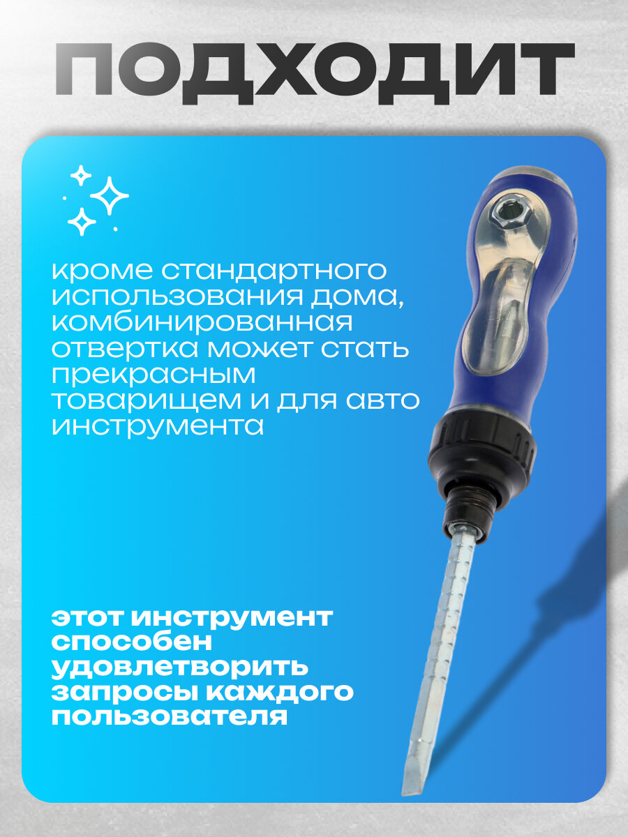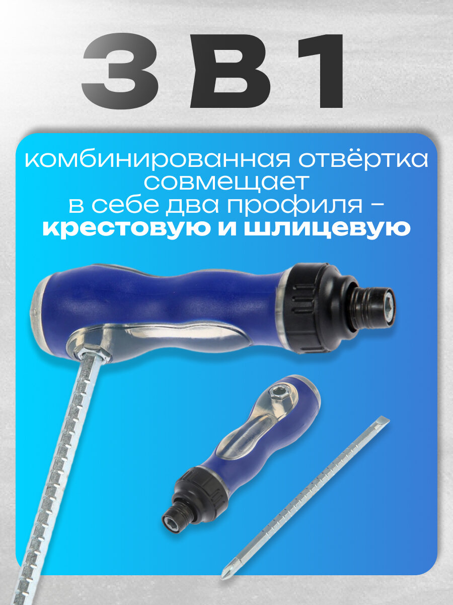 10 цен на Отвертка комбинированная тундра, 3 в 1, реверс, 2К рукоятка, PH2/SL6 х 75-110 мм