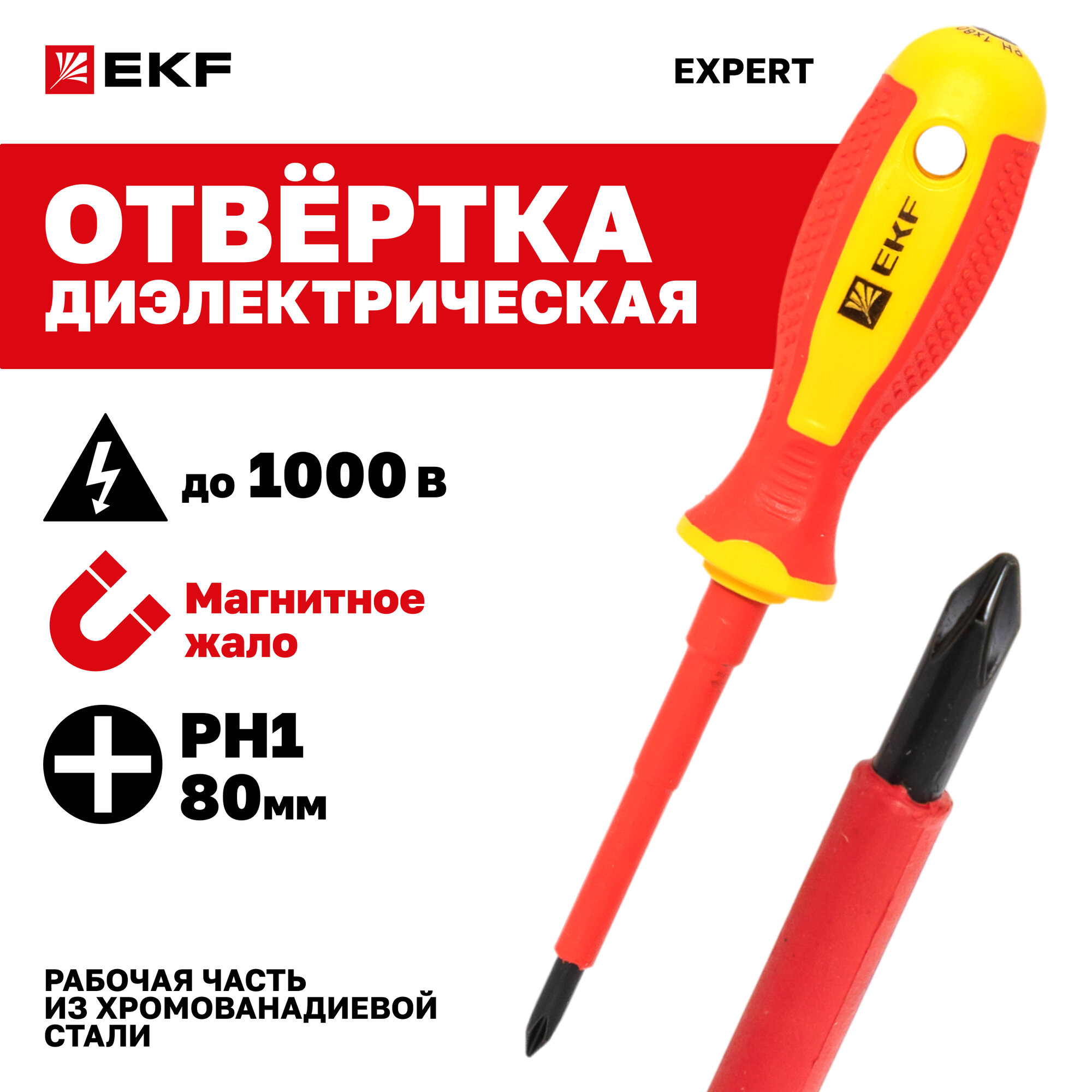 Отзывы на Отвертка диэлектрическая Expert PH1x80 мм 1000В EKF, двухкомпонентная рукоятка