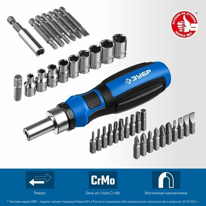 Отзывы на Отвертка реверсивная в наборе Компакт-38 ЗУБР 38 шт, Профессионал