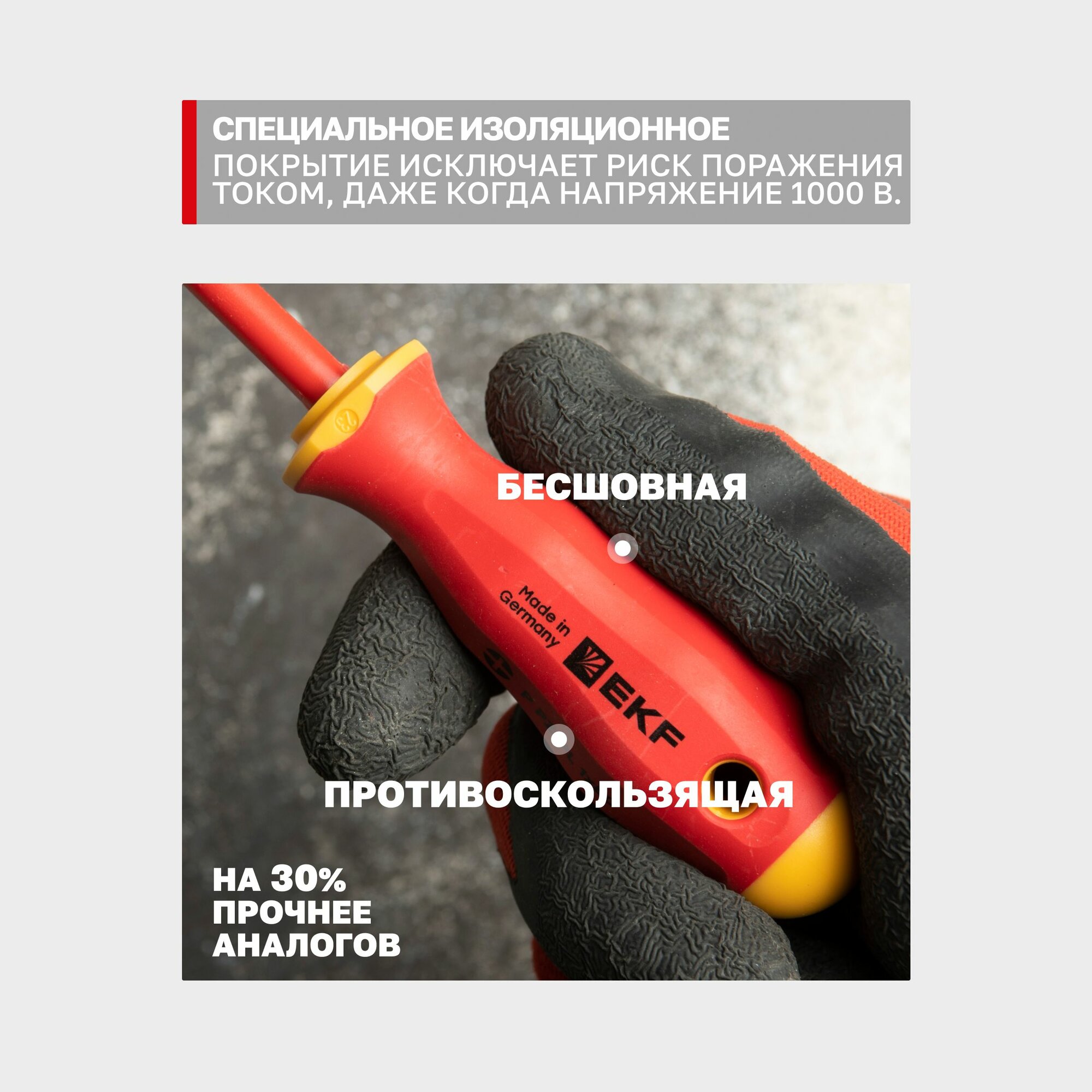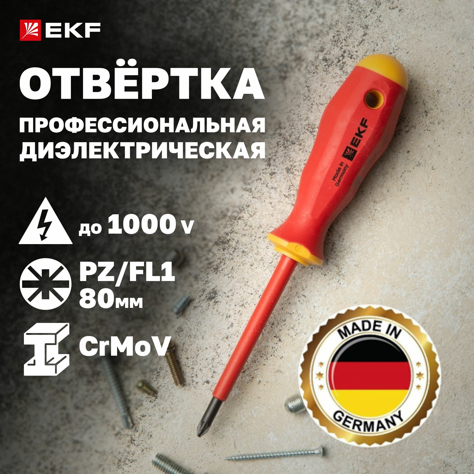 Отзывы на Отвертка диэлектрическая Professional PZ-FL1х80 мм VDE 1000В EKF с магнитным наконечником