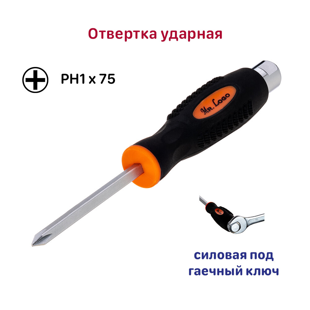 Отвертка ударная PH1 x 75 мм Mr.Logo (силовая под гаечный ключ) информация: