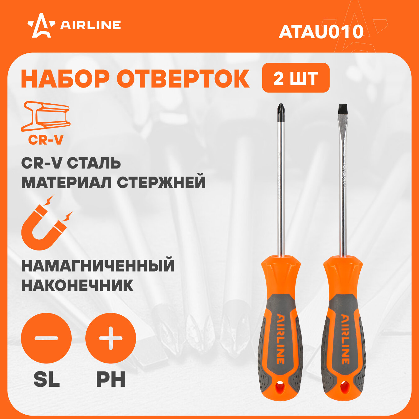 Набор отвёрток 2 пр. (SL5x125mm, PH1x125mm), пласт. подвес ATAU010 AIRLINE информация: