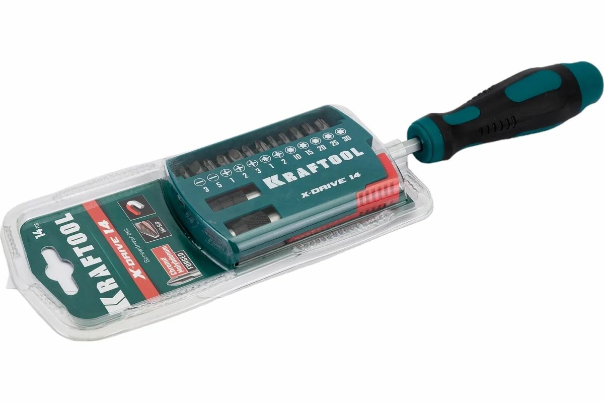 Отвертка-битодержатель 14 предметов X-Drive-14, KRAFTOOL (25814) информация: