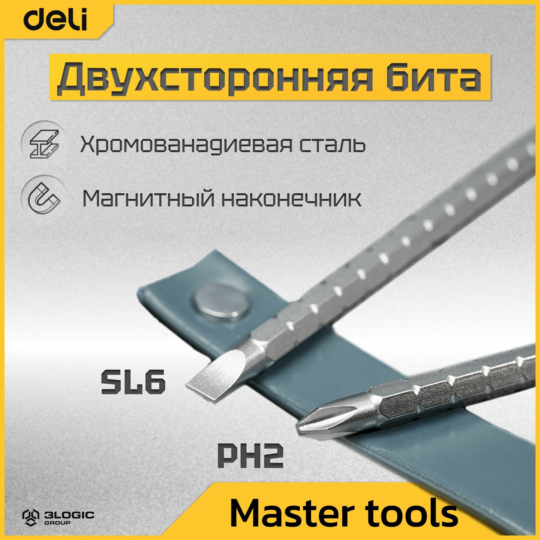 Двухсторонняя отвертка с трещоткой PH2+SL6 Deli DL626010 (Cr-V, регулируемая длина 110-150мм, диаметр хвостовика 6мм) информация: