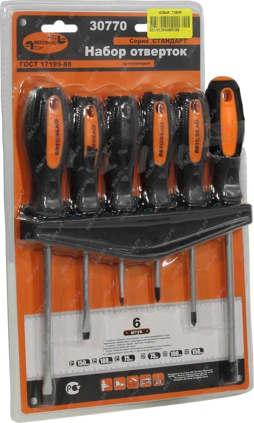 10 цен на Набор отверток плоских и крестовых , 6 предметов, автодело АД 30770 в блистере