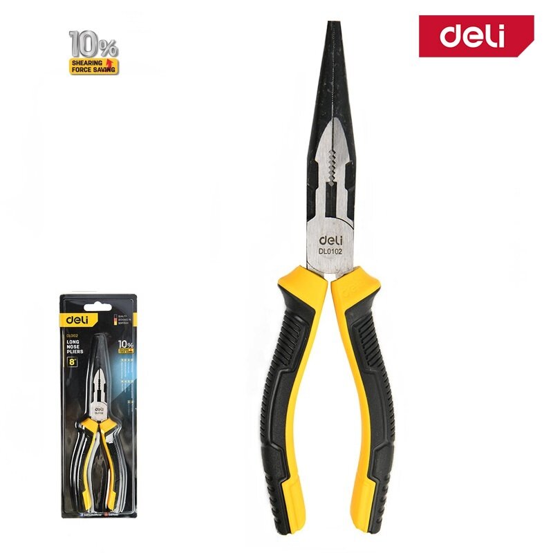 10 цен на Удлиненные плоскогубцы 200мм Deli DL0102 двухкомпонентная прорезиненная рукоять