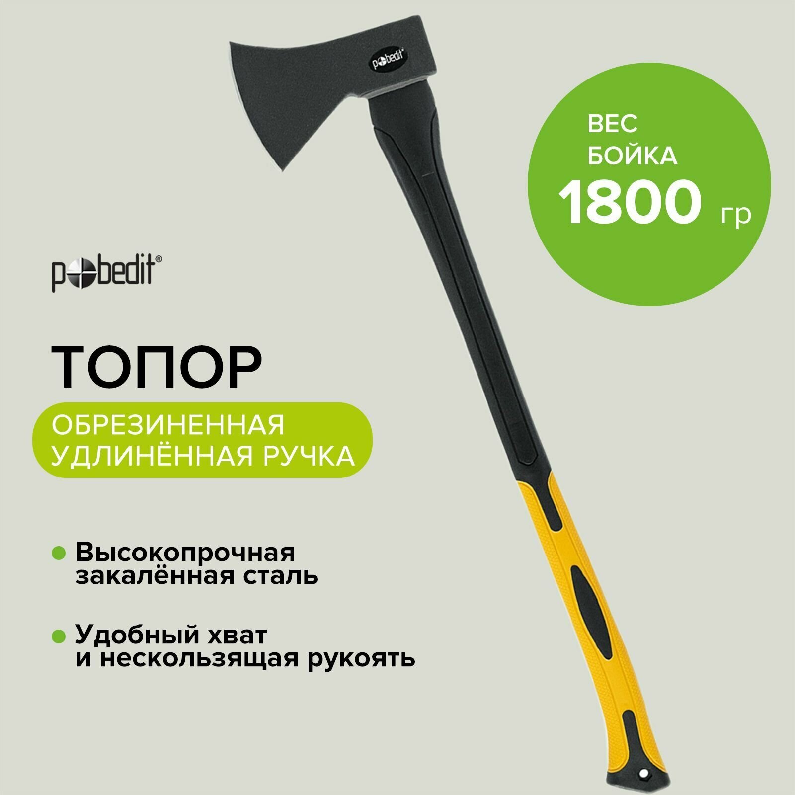 Топор туристический хозяйственный с обрезинной рукоятью 1800 г Pobedit информация: